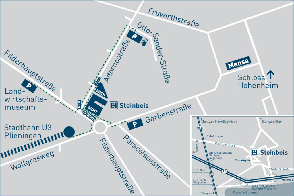 Wenn Sie mit dem Auto anreisen, nutzen Sie gerne die kostenfreien Parkplätze in unmittelbarer Nähe des SHMT. Die genaue Position der Parkplätze können Sie dem Lageplan entnehmen.